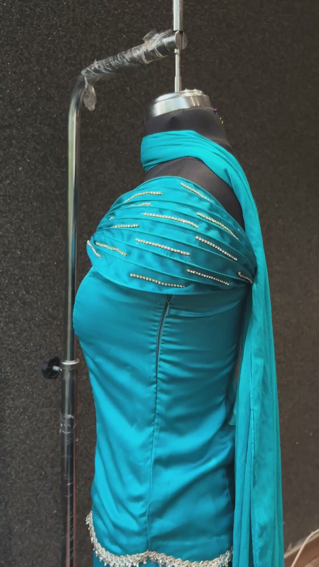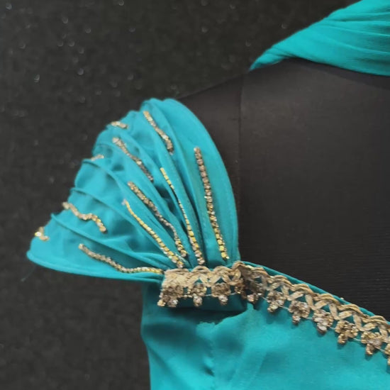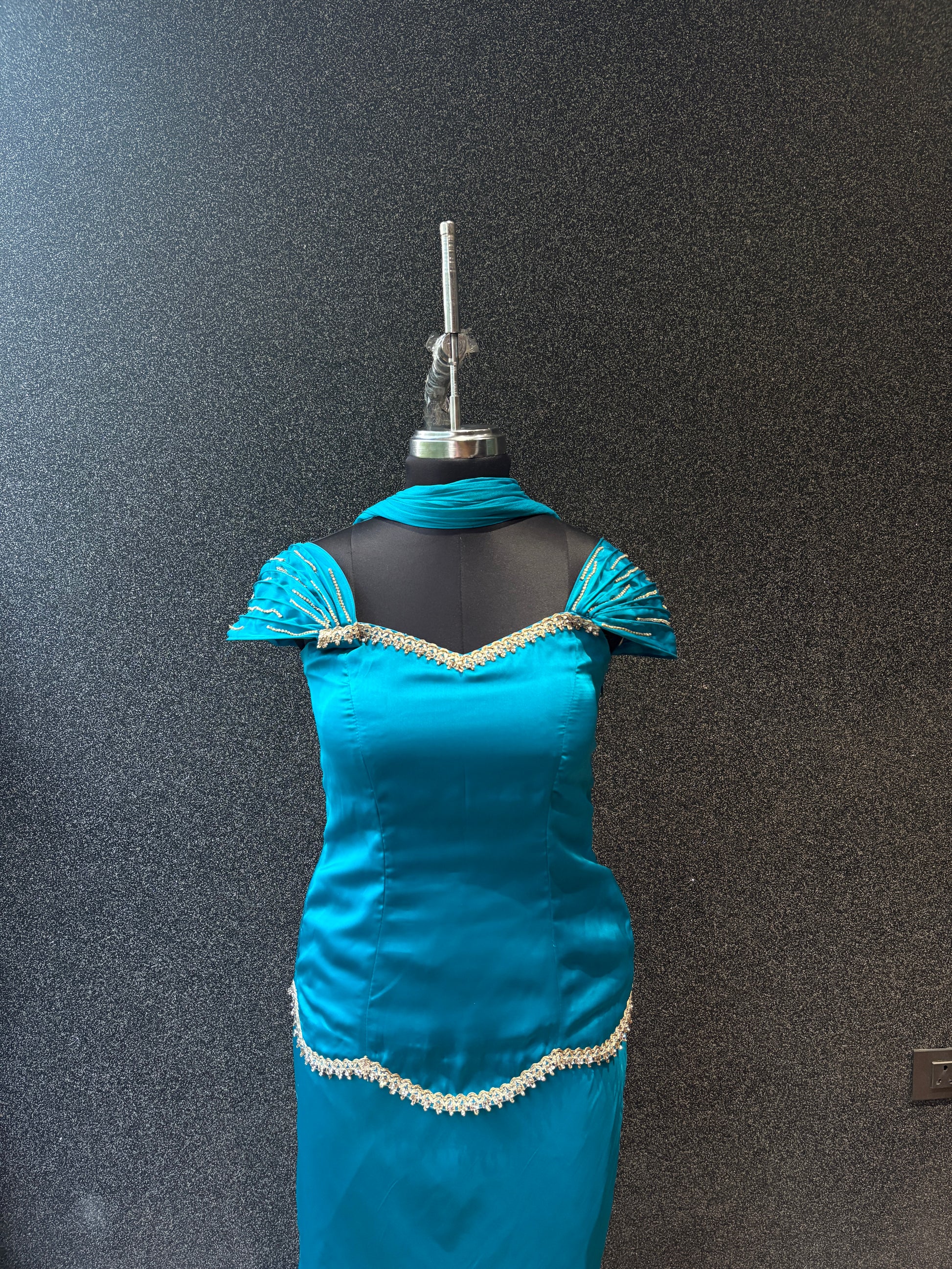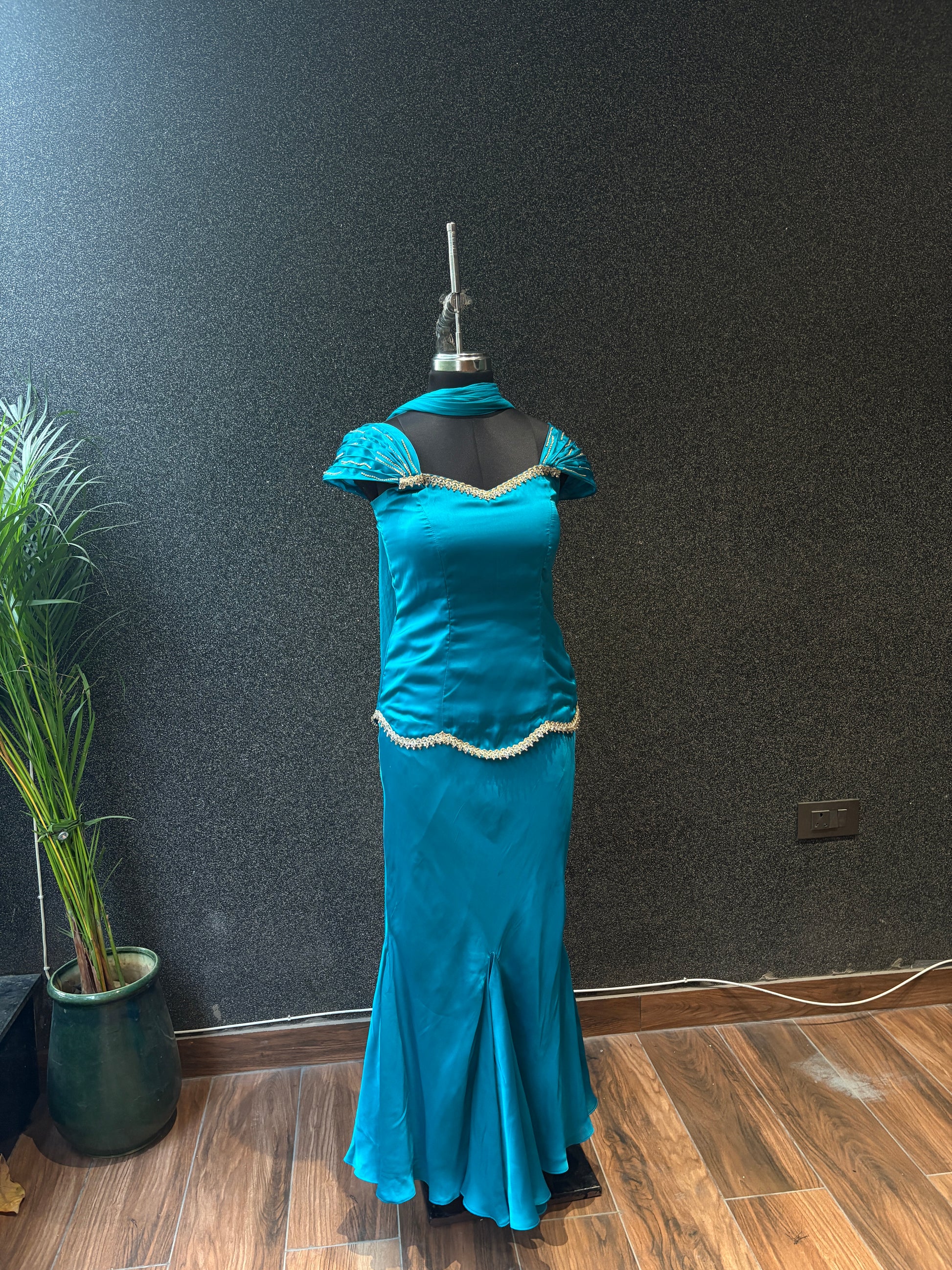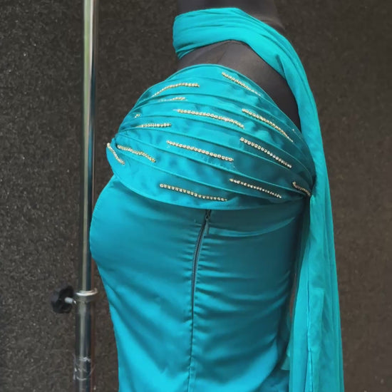 Turn heads wherever you go with our Jasmine Three-Piece Set perfect for birthdays, festive occasions, and weddings. Made in pure Armani silk satin, it feels as luxurious as it looks. The diamond-studded sleeves add a subtle sparkle, while the concealed zip gives a sleek and comfortable fit. It’s fully lined for ease, and the flowy skirt silhouette moves beautifully with every step. A statement piece that blends comfort, elegance, and timeless charm.