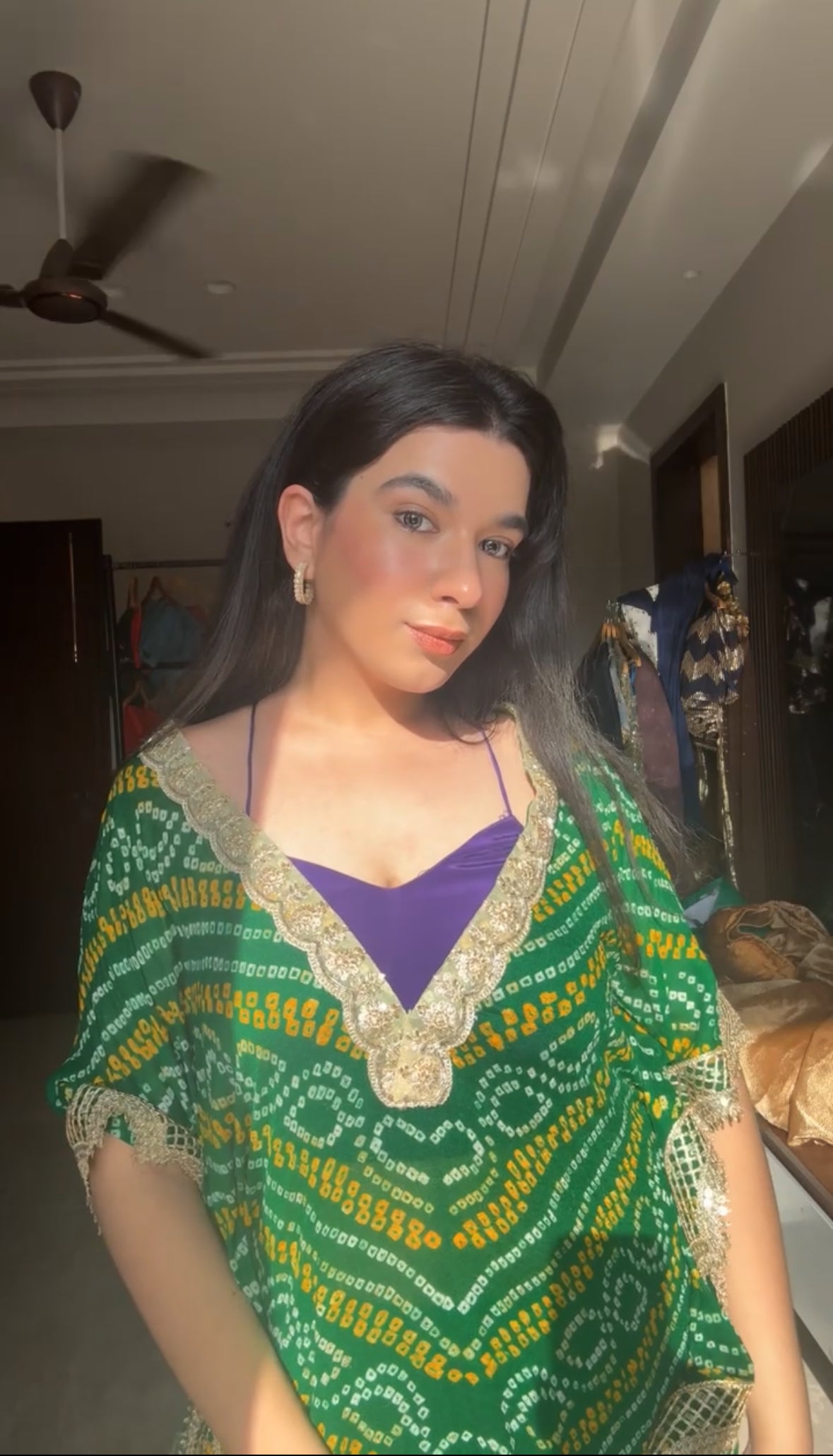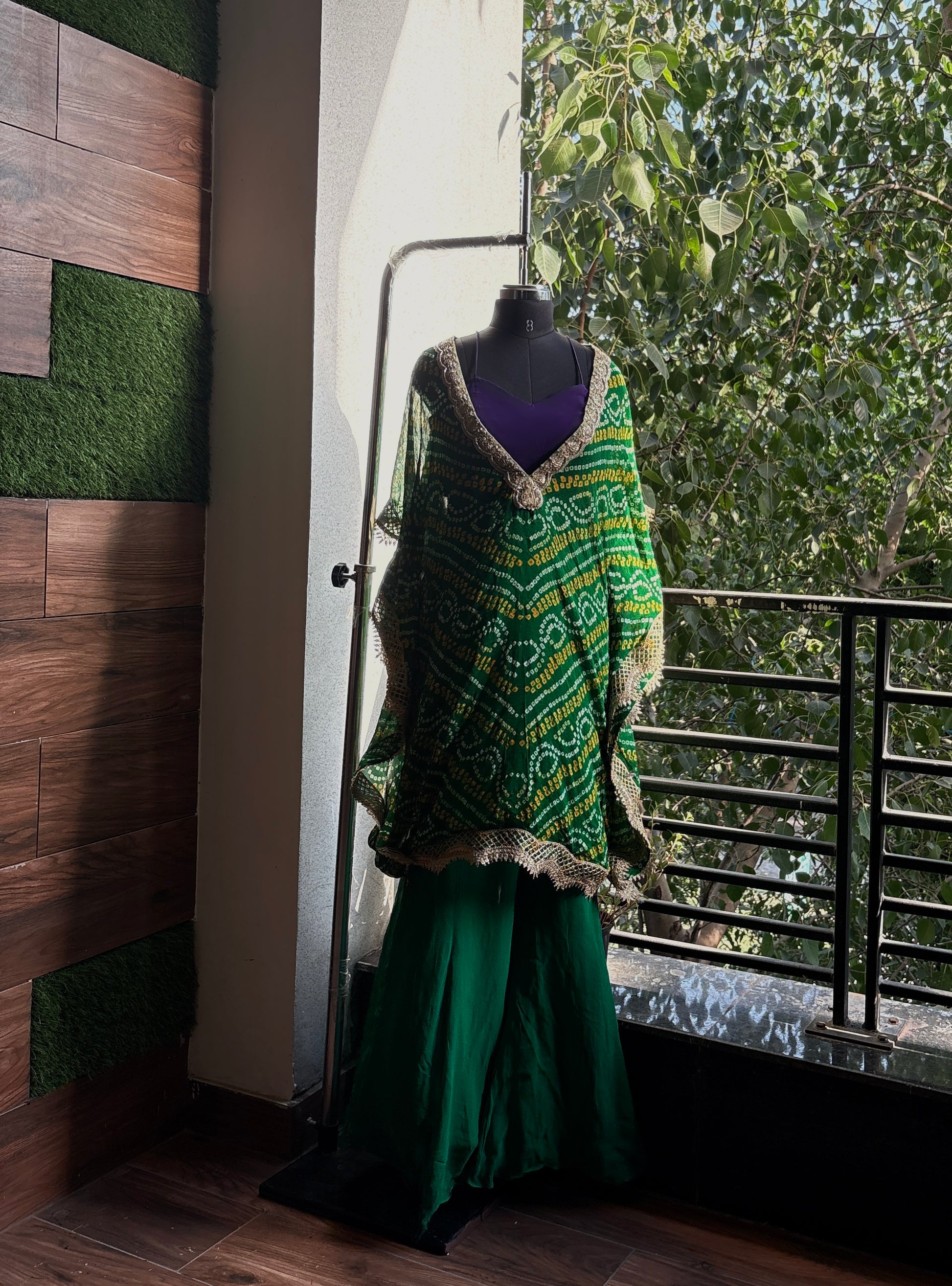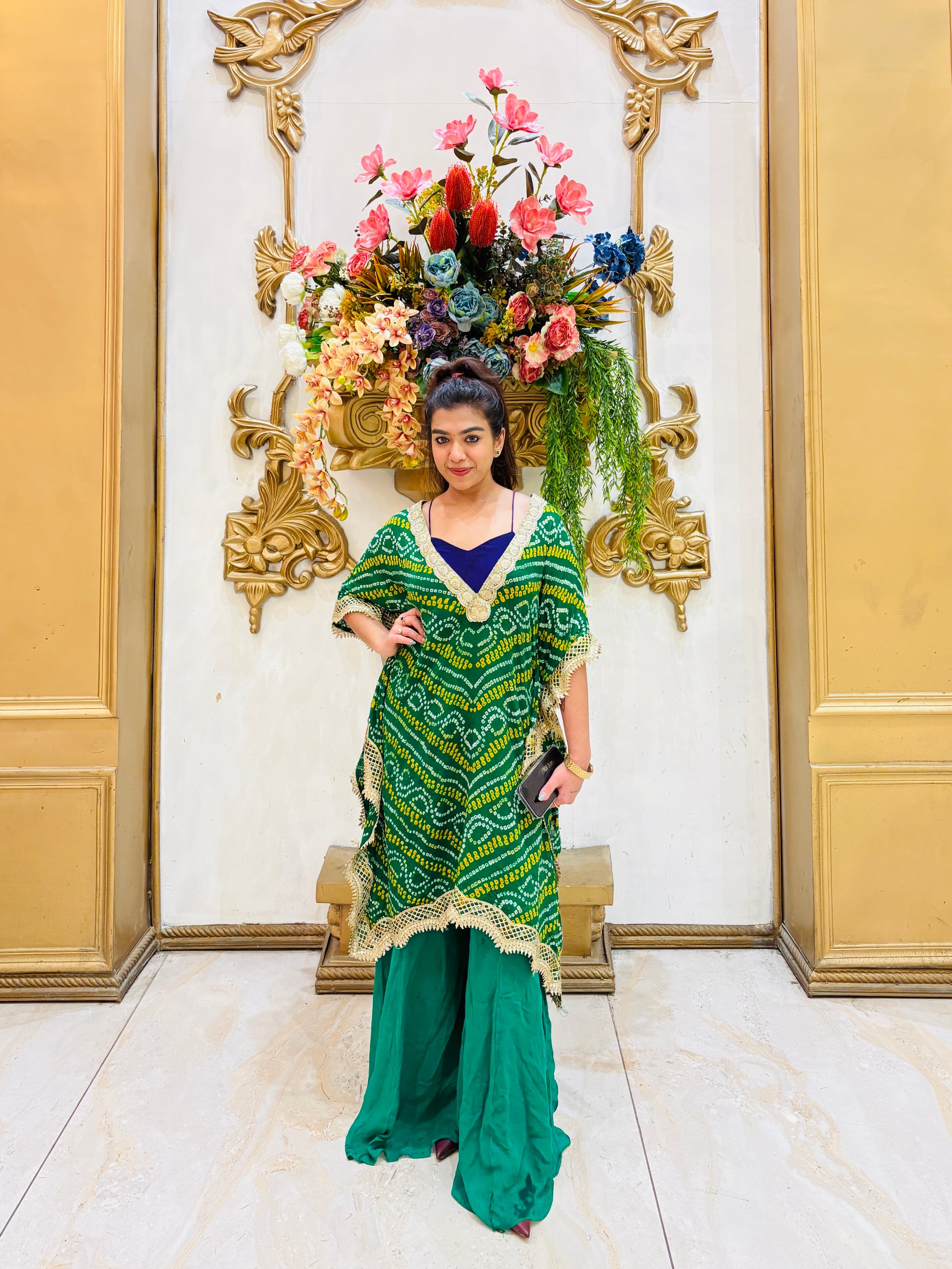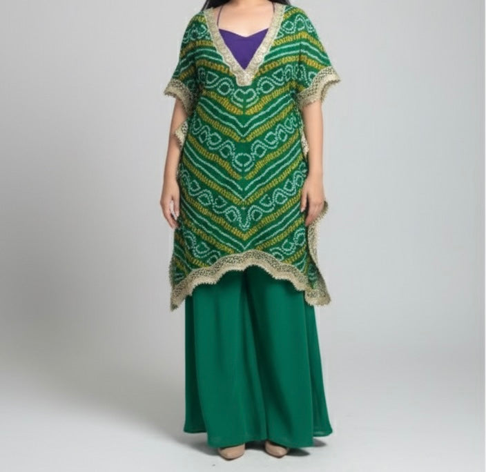 Comes with a matching Bandhani kaftan set