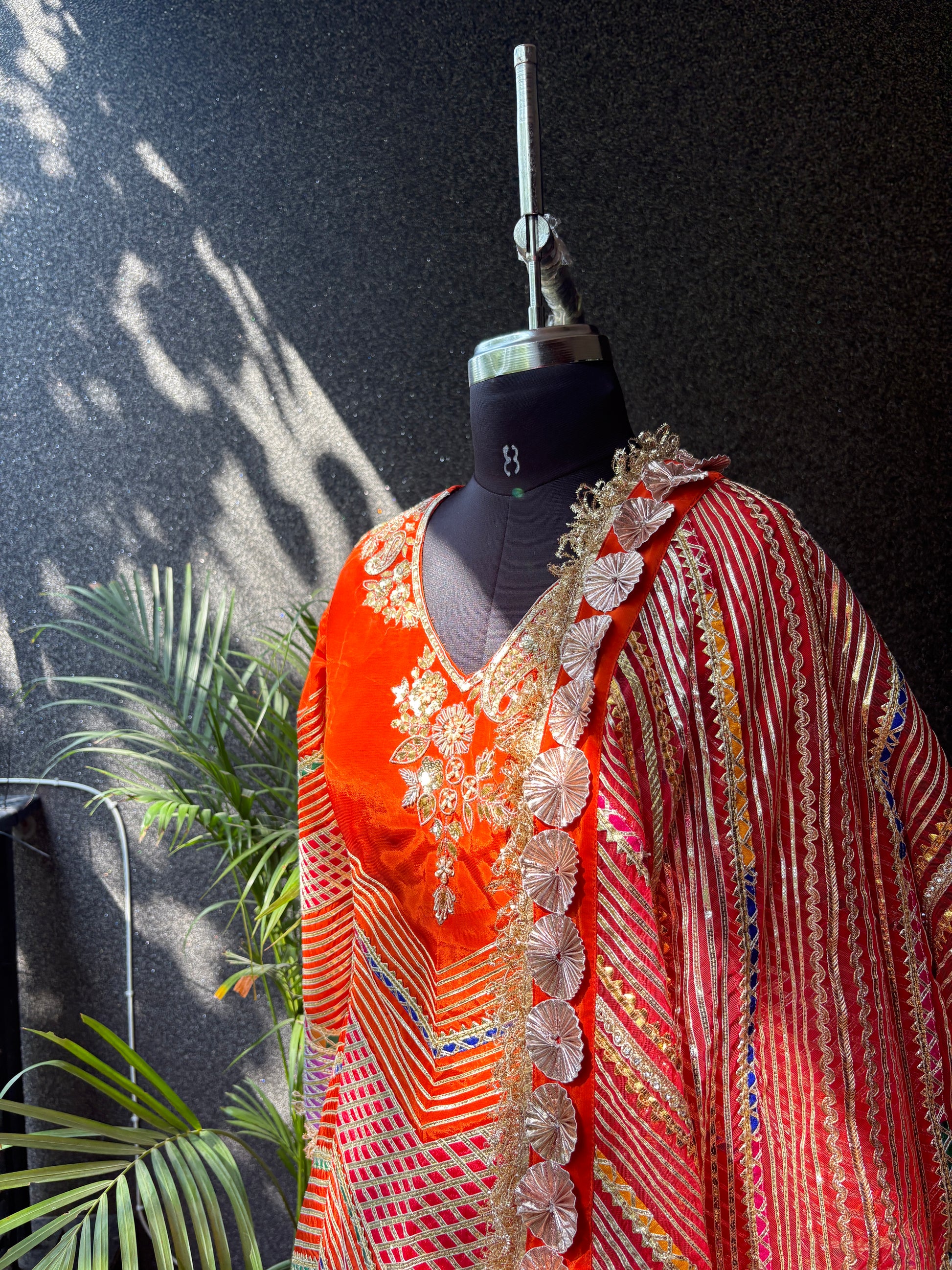 • Elegant Dupatta: Adorned with abundant gotas and finished gracefully at the hem, adding a regal touch.