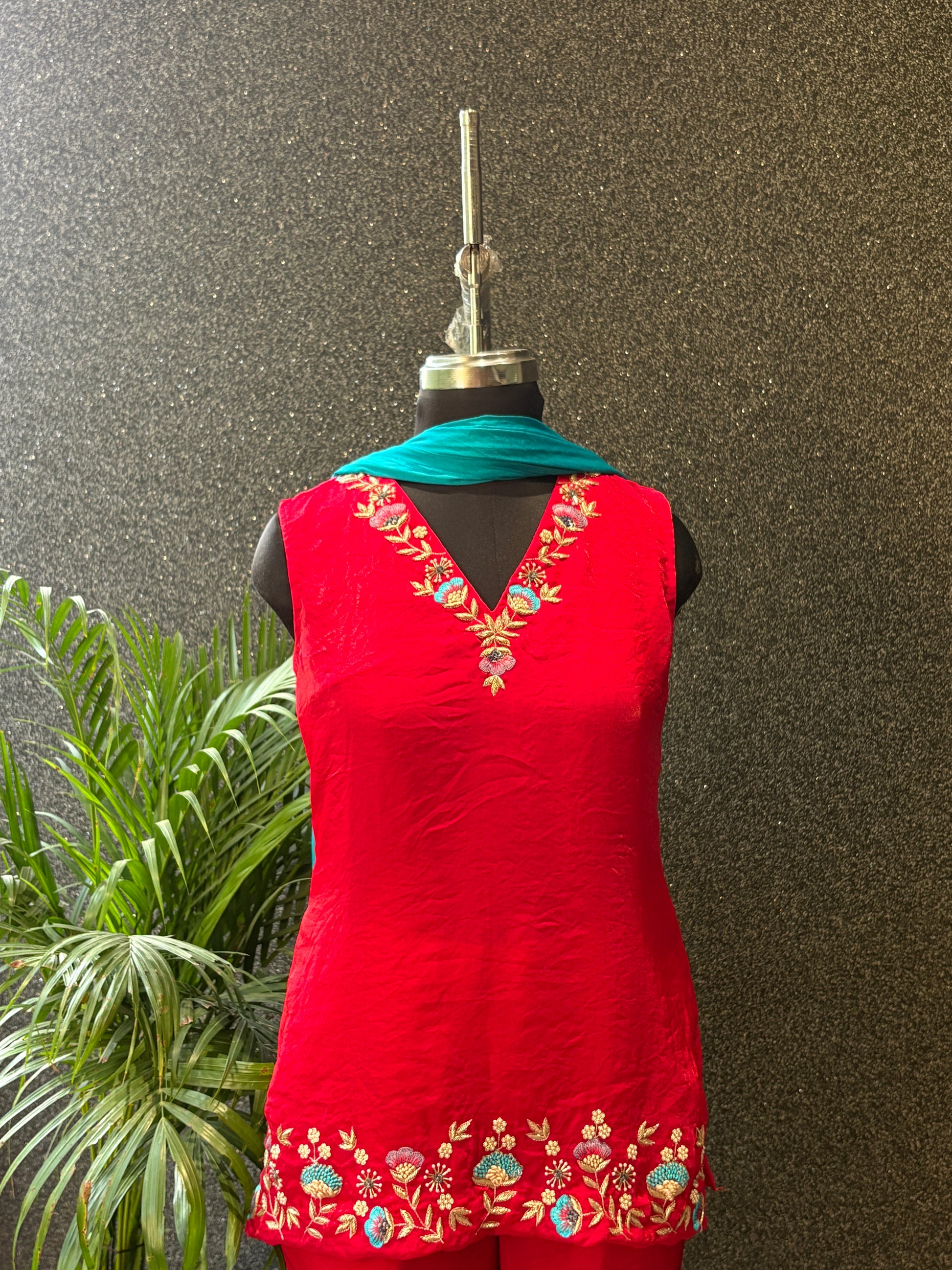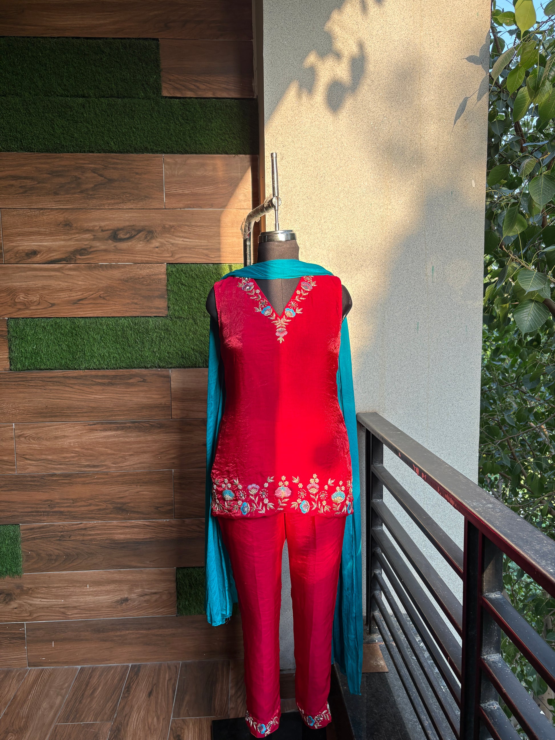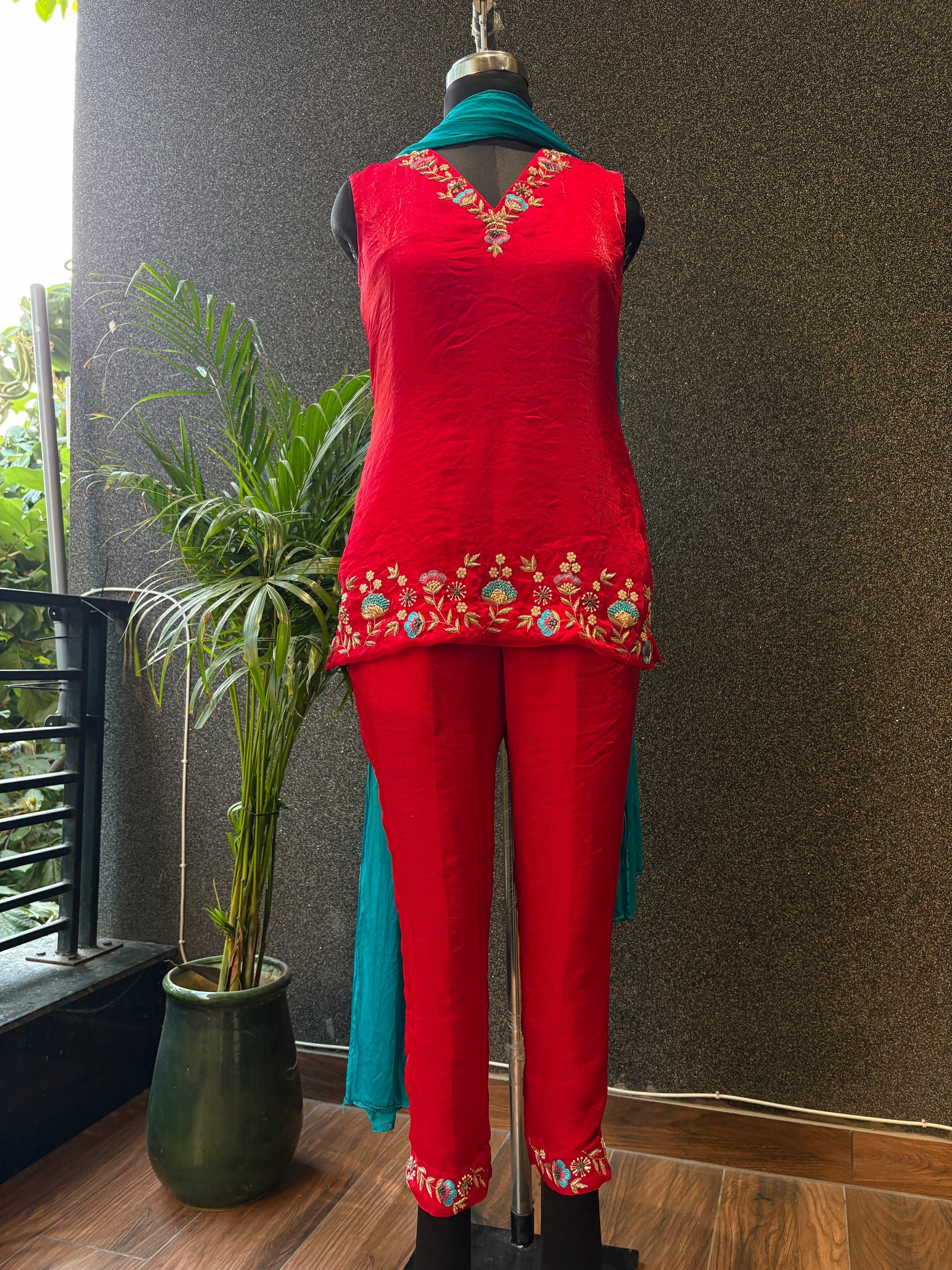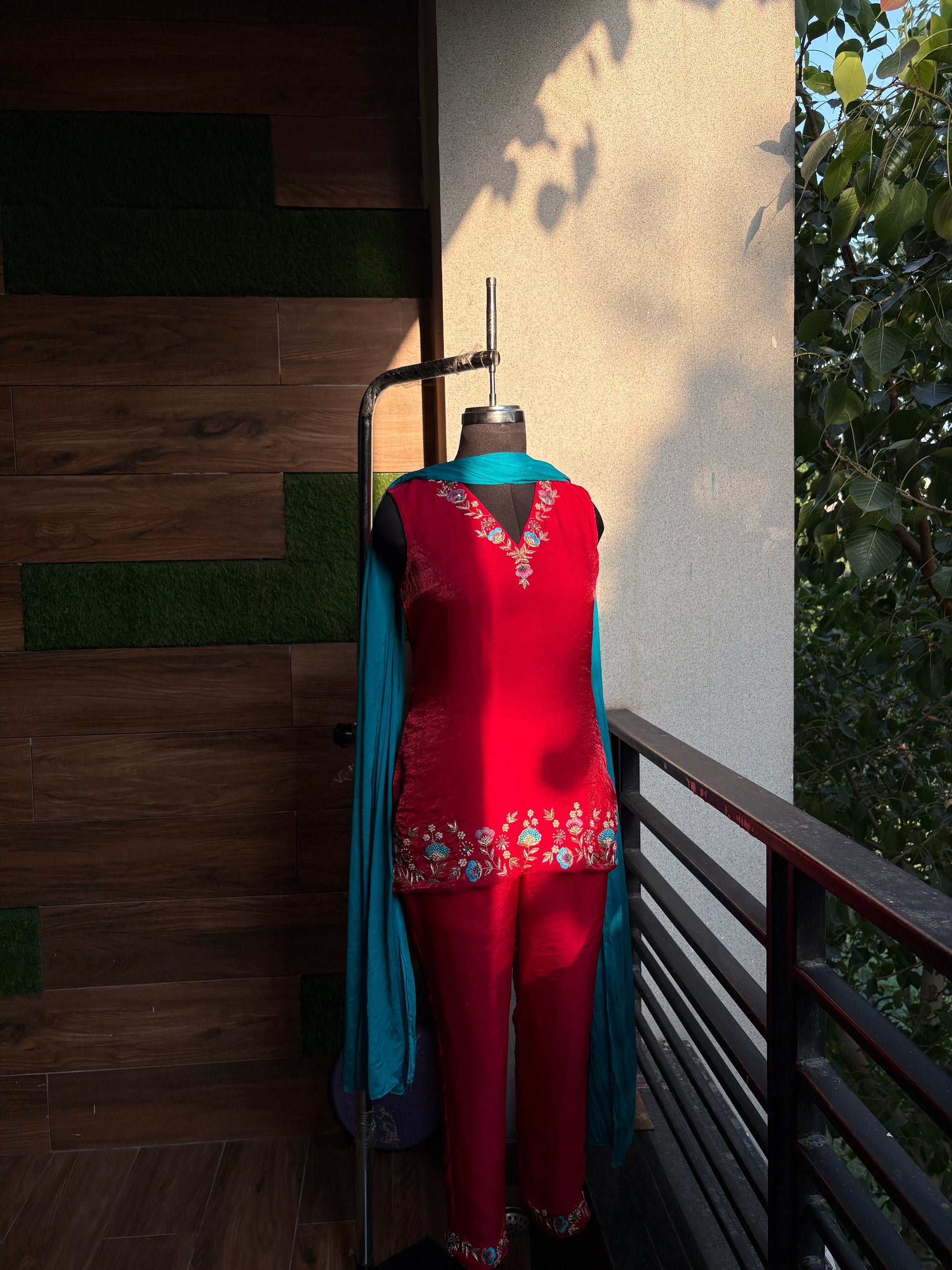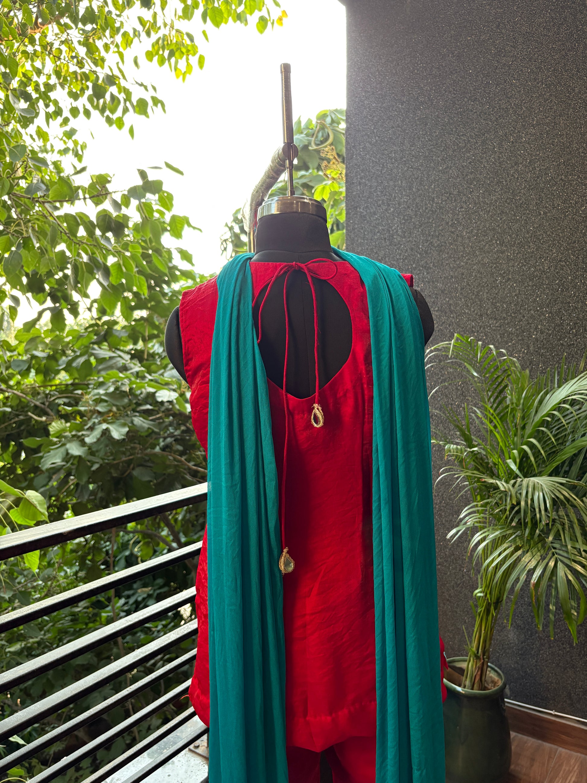 • Comes with a color-block dupatta that adds a bold festive contrast