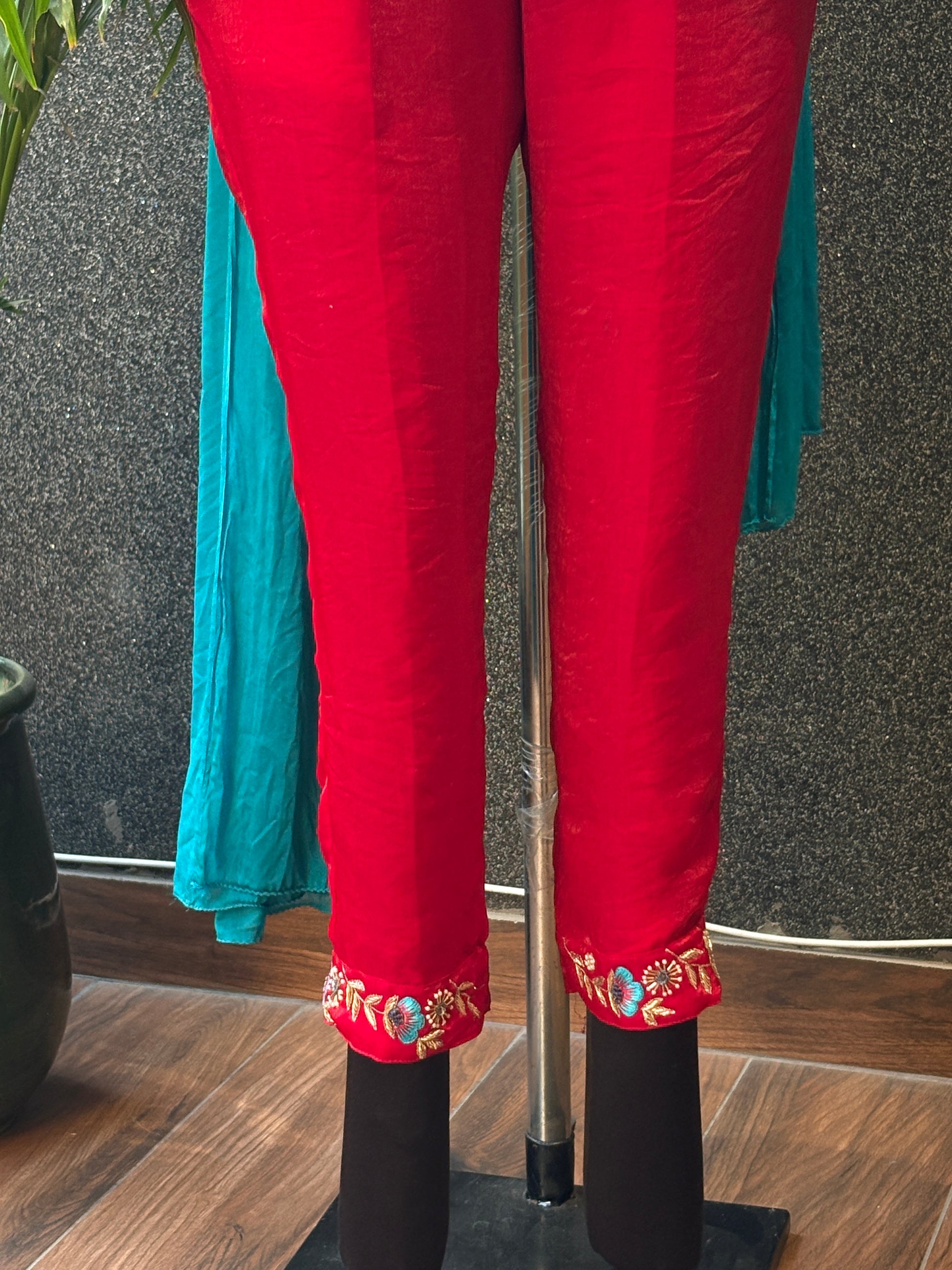 • Adorned with hand-done embroidery using resham thread and dabka work
