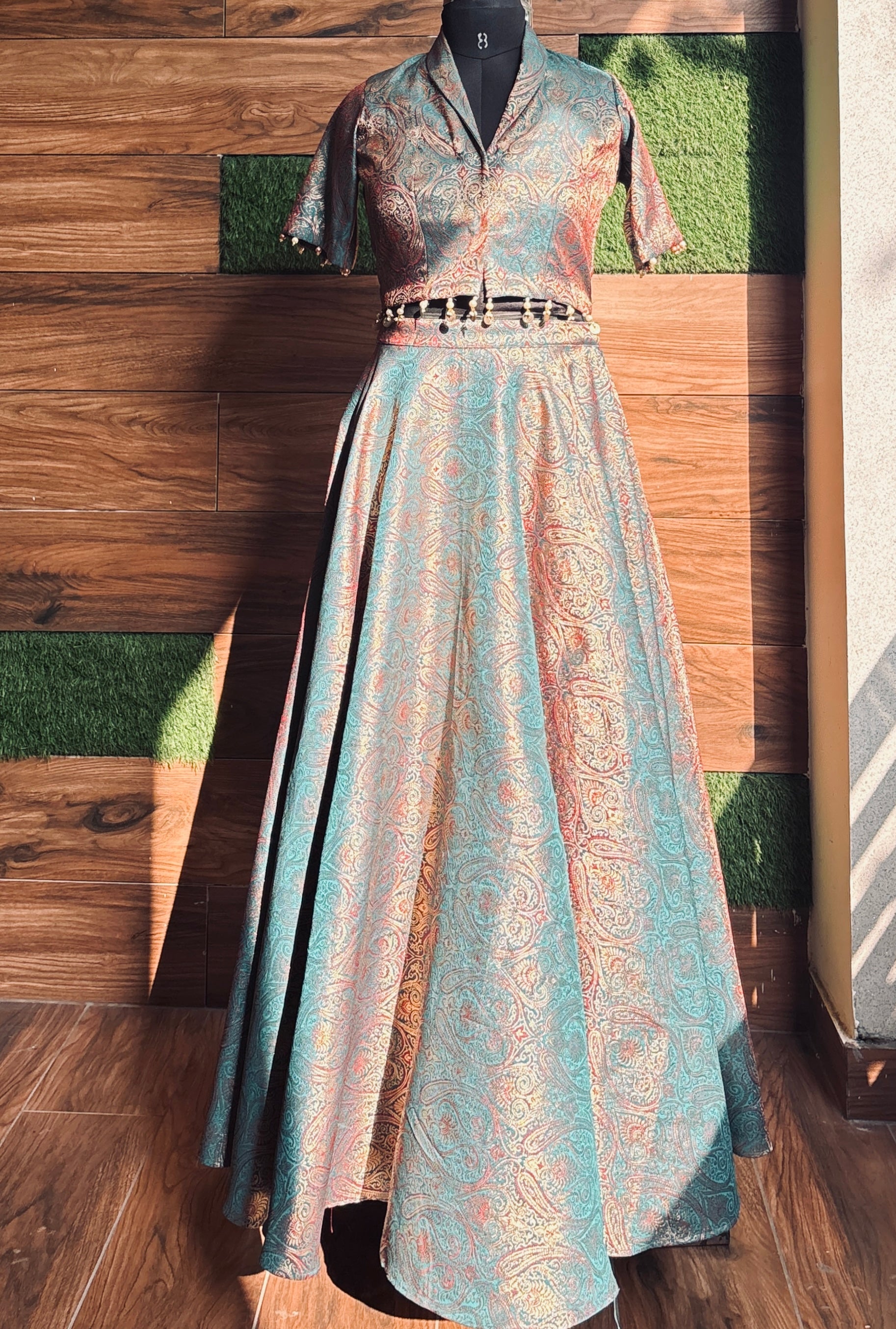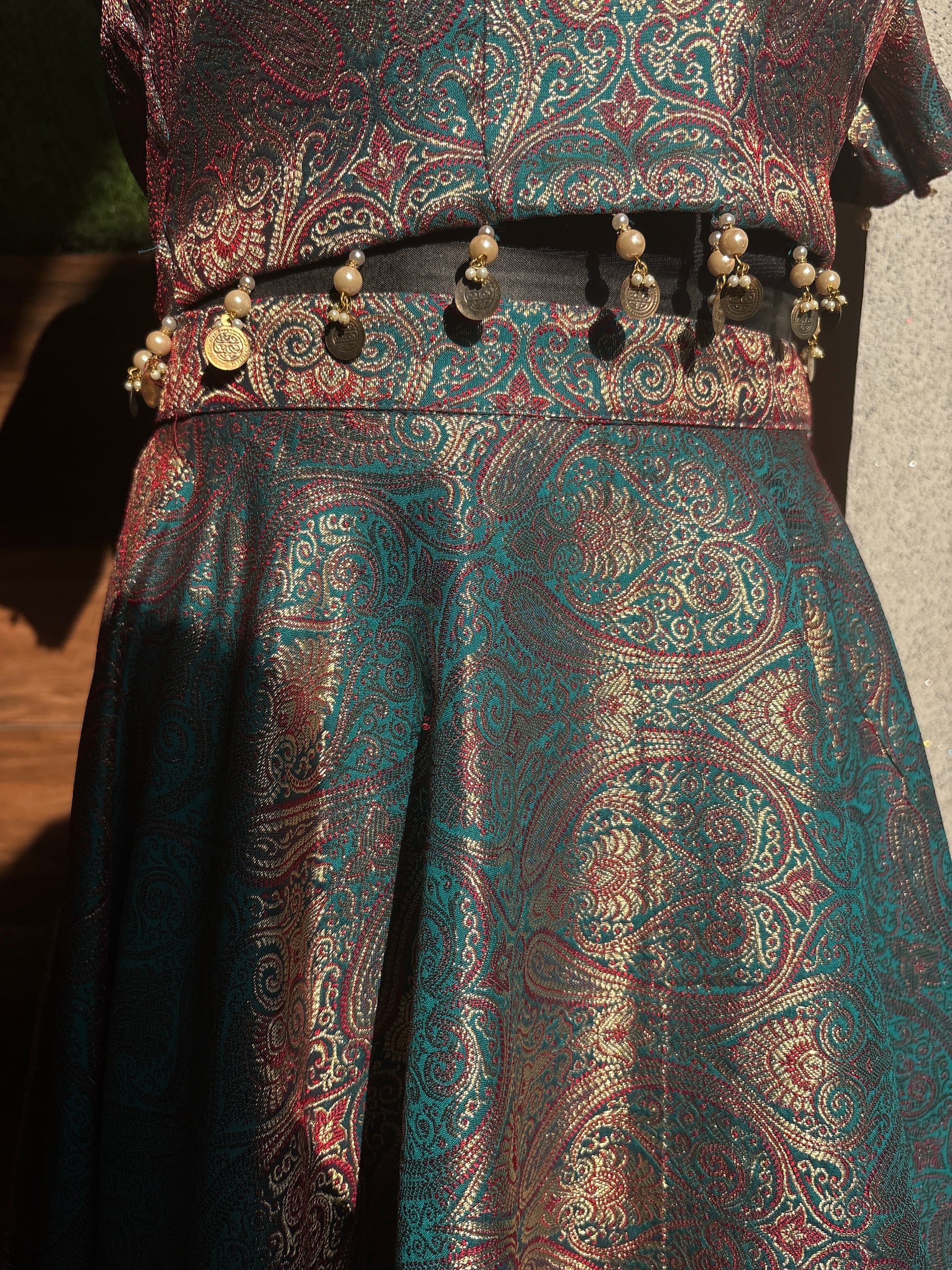 Crafted in pure brocade silk fabric, exuding royal charm with a modern twist.