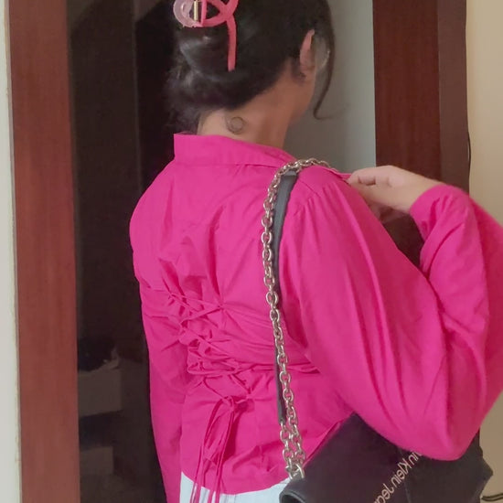 Turn heads with our Fuchsia Dream Lace-Up Shirt – a vibrant statement piece crafted for women who love to blend structure with playful charm.