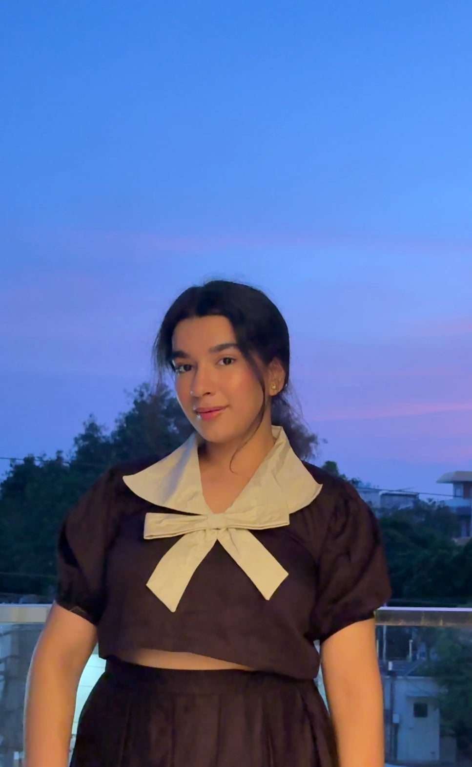 DETAIL : Cropped length | Short sleeves | Statement sailor collar in cream with oversized bow detail | Contrast cream and black design | Relaxed fit